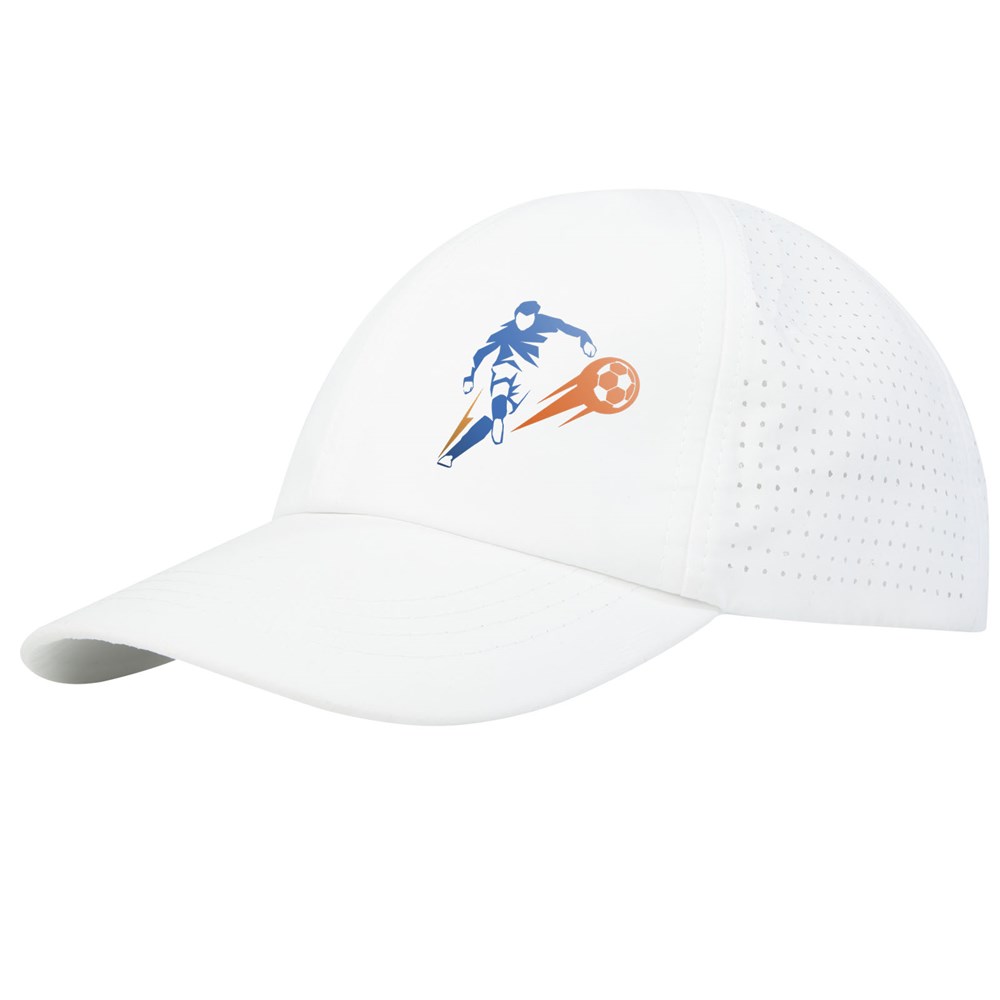 Mica 6 Segmente GRS recyceltes Cool Fit Kappe. Hergestellt aus 110 g/m² GRS-zertifizierter recycelter Polyester-Mikrofaser. Die Rückseite ist mit lasergeschnittenen Löchern versehen, die für eine optimale Belüftung sorgen und Sie bei Outdoor-Aktivitäten kühl und komfortabel halten. Die Kappe ist für einen bequemen Sitz bei einem Kopfumfang von 58 cm konzipiert und lässt sich dank des Metallschnallenverschlusses einfach und sicher anpassen. Die GRS-Zertifizierung gewährleistet eine 100 % zertifizierte Lieferkette, vom Rohmaterial bis zu unseren Drucktechniken, was diese Mütze zu einer guten Wahl macht.