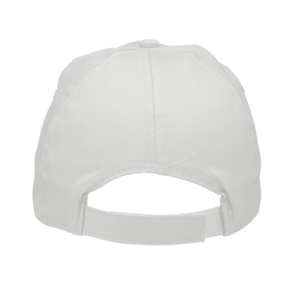 Baseballkappe aus 100% Baumwolle mit vorgeformtem Schirm und verstellbarem Verschluss.