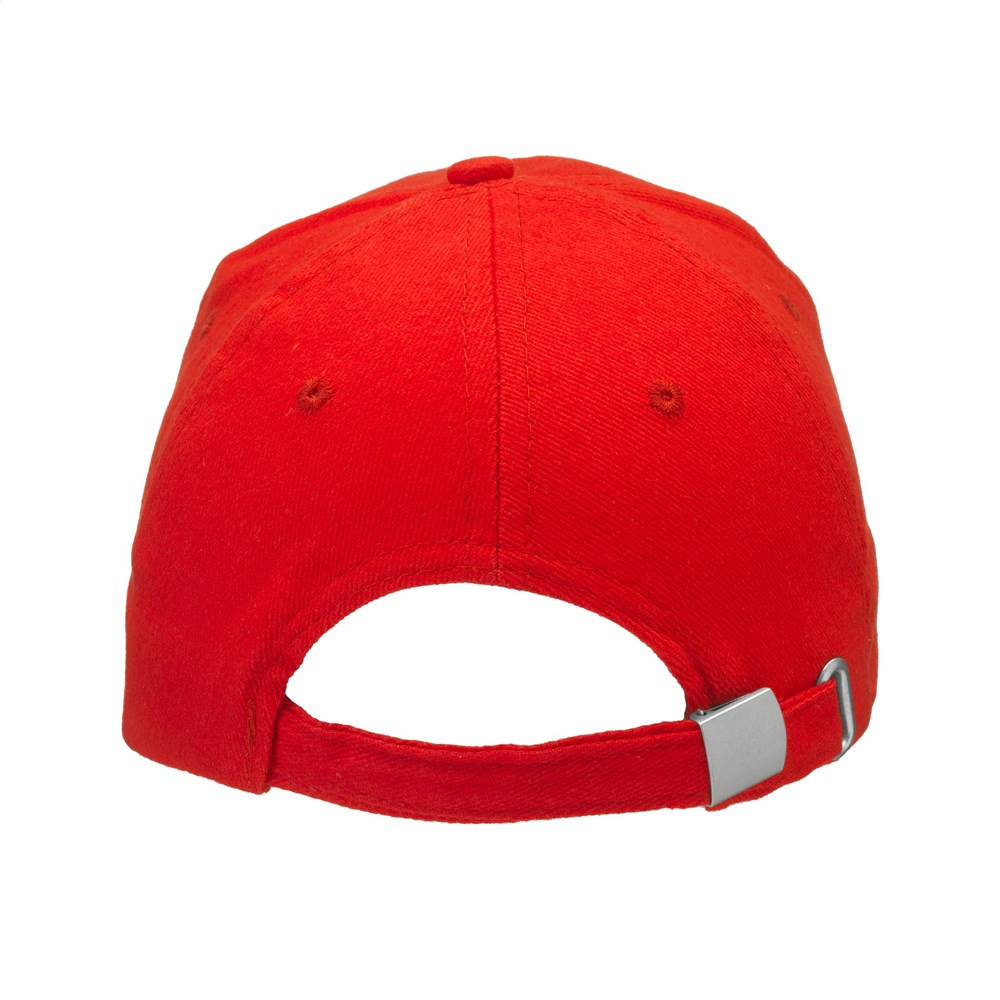 Starke Baseballkappe in besonders schwerer Qualität. Aus 100% gekämmter Baumwolle mit vorgeformtem Schirm und verstellbarem, metallenem Clipverschluss an der Rückseite.