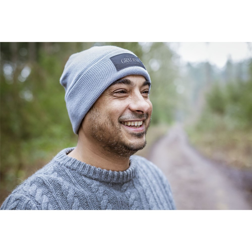 Gestrickte Mütze mit Umschlag. Aus 100% RPET-Polyester. Beliebt, herrlich warm und von guter Qualität. Einheitsgröße. Mit schwarzem Etikett zur Dekoration. GRS-zertifiziert. Recyceltes Material insgesamt: 100%.