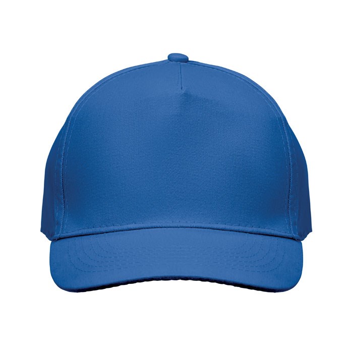 5-Panel-Baseball-Cap aus Baumwolltwill 180 g/m² mit verstellbarem Klettverschluss. Zwei farblich abgestimmte, umstickte Belüftungslöcher. Größe 7 1/4.