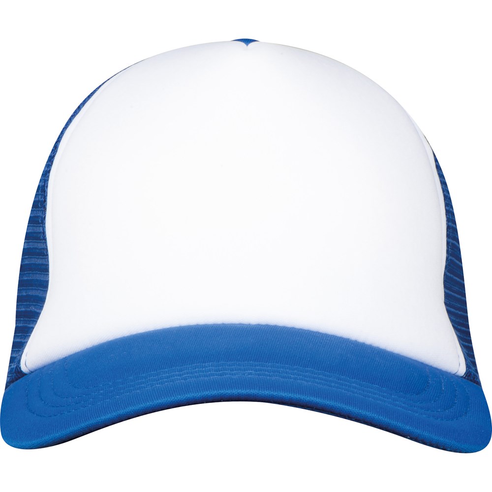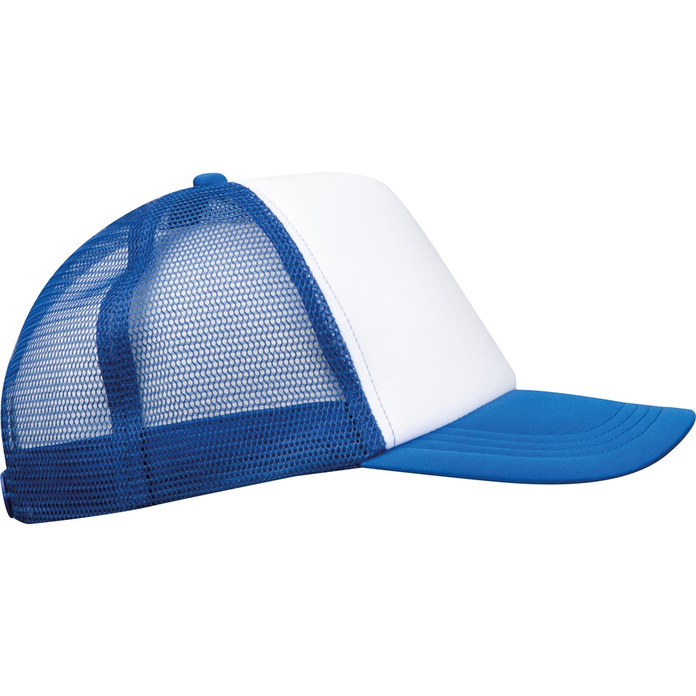5 Panel Trucker Cap mit gepolsterter Stirnfront und verstellbaren Kunststoffverschluss am Hinterkopf. Perfekter lässiger Style für den Alltag. Ihr Logo wird auf die Stirnfront der Cap gedruckt.