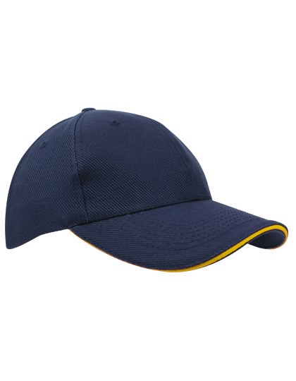 6-Panel-Cap | Strukturierte Baumwolle | Mit Frontverstärkung | Verstellbar durch Metallclip | Sandwich-Schirm | Ziernähte