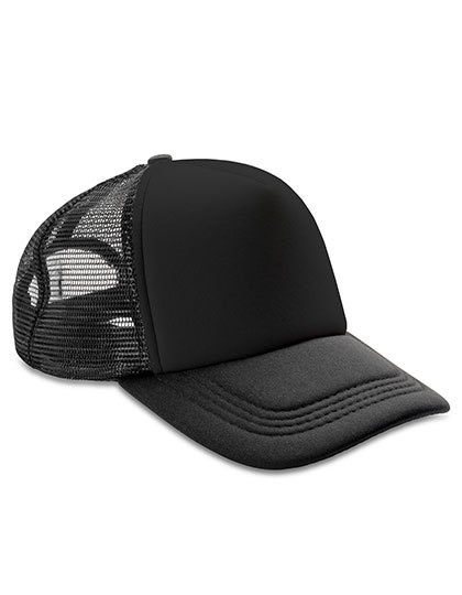Wattiertes Polyester | 5-Panel, vier aus Meshmaterial und eine aus festem Stoff | Weißes Stirnteil mit Netz und Schirm in Kontrastfarbe | Snapback-Größenverstellung | Halbgewölbter Stoff-Schirm | Abreißetikett