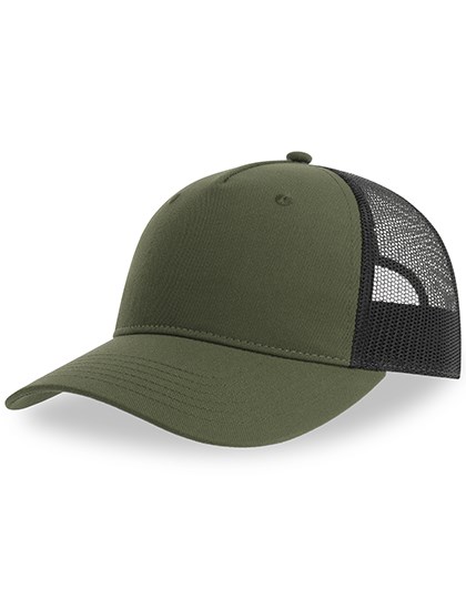 Hauptmaterial: 100 % zertifizierter recycelter Polyester-Twill / Seite und Rückseite: 100 % zertifiziertes recyceltes Polyester (aus 3 Flaschen hergestellt) | Klassische Fünf-Segmente-Truckerkappe aus recyceltem Polyester-Twill | Recyceltes Mesh-Material | Snapback-Verschluss aus recyceltem PVC | Breite Form | Leicht und atmungsaktiv