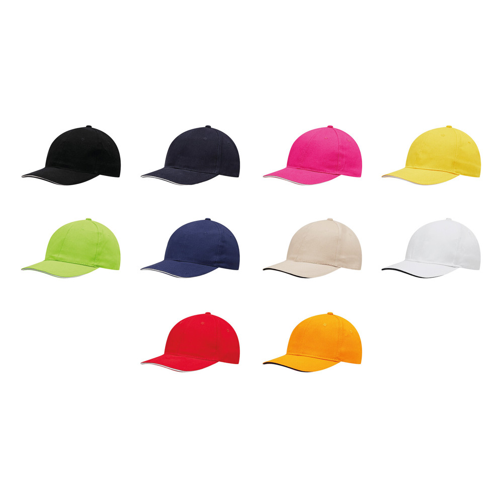 6-Panel-Sandwich-Cap LIBERTY: verstärkte Frontsegmente, 6 gestickte Luftlöcher, Knopf, größenverstellbarer Klettverschluss am Hinterkopf, 100% Baumwolle (heavy-brushed)