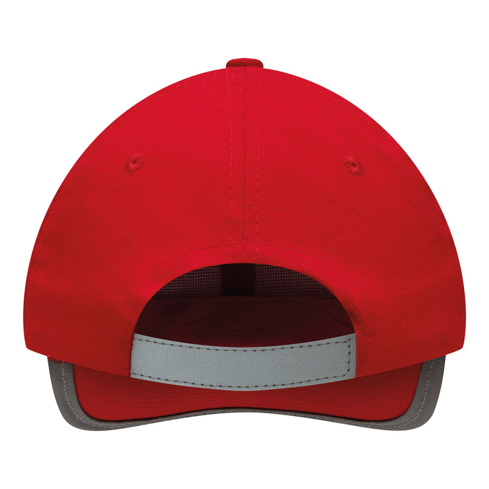 6-Panel-Baseball-Cap DETECTION: mit reflektierendem Band an Schirm und hinten auf dem Klettverschluss, verstärkte Frontsegmente, 6 gestickte Luftlöcher, Knopf, 100% Baumwolle (heavy-brushed)