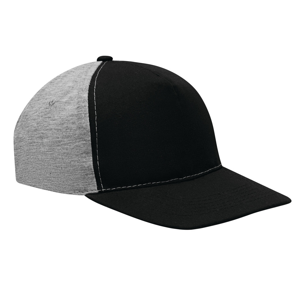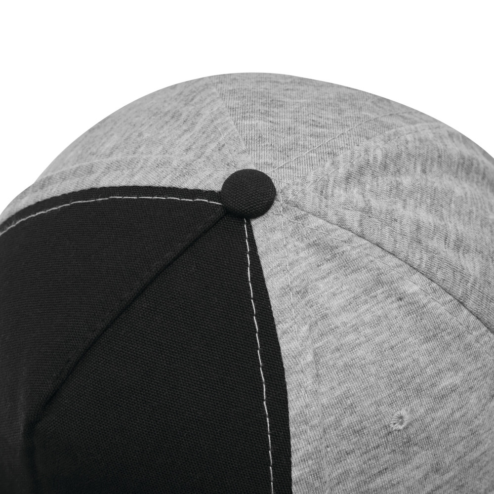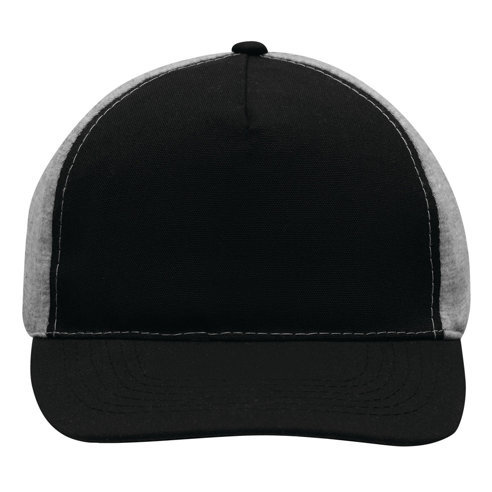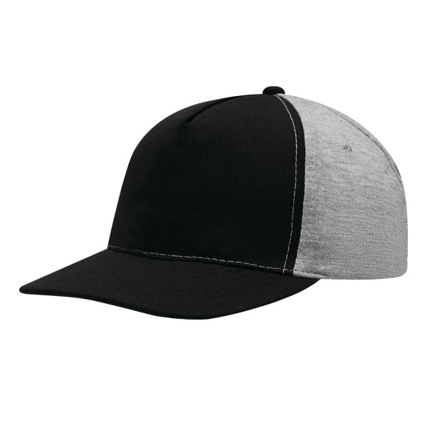 5-Panel-Baseball-Cap UP TO DATE, 2-farbig: verstärktes Frontsegment in Canvas-Optik, übrige Segmente aus Jersey, 4 gestickte Luftlöcher, Knopf, farbig abgesetzter und größenverstellbarer Klettverschluss am Hinterkopf