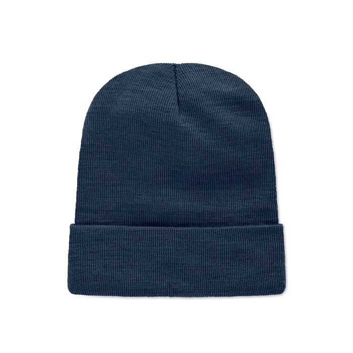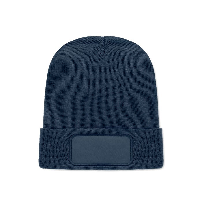 Beanie aus softem, elastischem RPET-Polyester. Mit Umschlag und Aufnäher. Unisex.