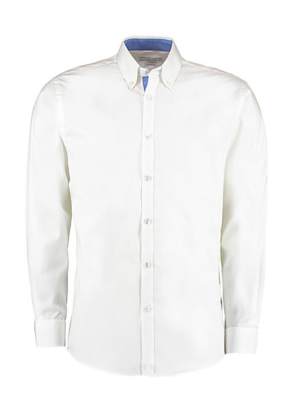 ·Innenseite von Kragen, Knopfleiste und Manschetten in Kontrastfarbe