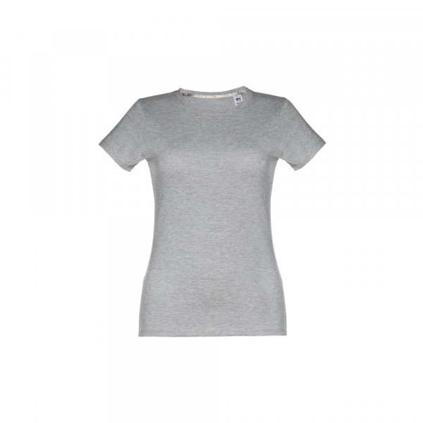 Damen T-shirt aus 100% Strickjersey und Baumwolle (190g/m²) mit kardiertem Baumwollfaden, tailliert. Diese hat einen dünnen Jersey-Kragen mit Satin-Verstärkungsband und Doppelnaht an Ärmeln und Saum. Bei der Farbe 183 bestehend aus 90% Baumwolle und 10% Viskose. Größen: S, M, L, XL, XXL