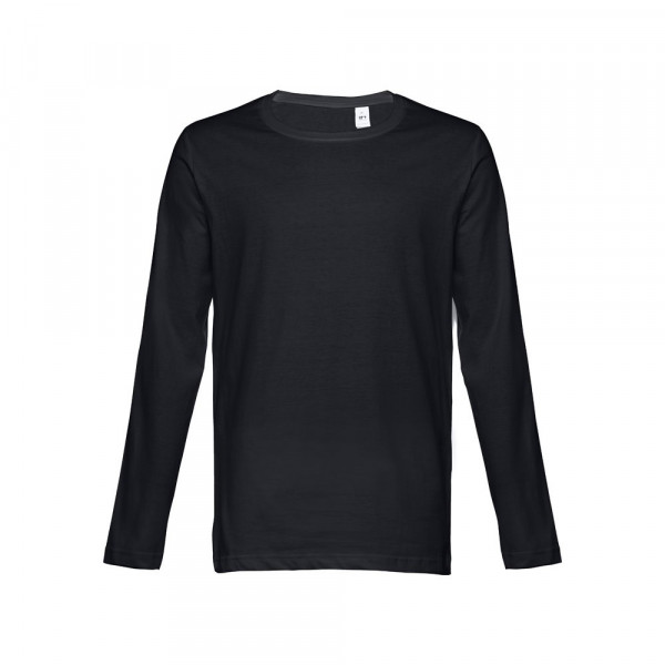 Herren Langarmshirt aus 100% Strickjersey und Baumwolle (150g/m²) mit kardiertem Baumwollfaden, in Tubular-Form, geripptem Kragen in 1x1 Ripp, Jersey-Verstärkung und Doppelnaht an Ärmeln und Saum. Bei den Farben 195, 195 bestehend aus 60% Baumwolle und 40% Polyester, Farbe 183 bestehend aus 90% Baumwolle und 10% Viskose. Größen: S, M, L, XL, XXL