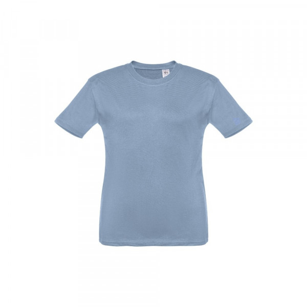 Kinder T-Shirt aus 100% Strickjersey und Baumwolle (150g/m²), unisex mit geripptem Kragen in 1x1 Ripp, Jersey-Verstärkung und Doppelnaht an den Ärmeln und Saum. Größen: 2, 4, 6, 8, 10, 12