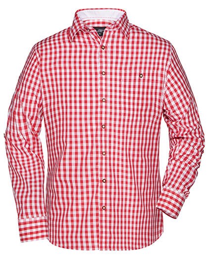 Herren-Hemd im klassischen Trachtenlook | Hochwertige, bügelleichte Popeline-Qualität mit Easy-Care Finish | Ärmel zum Hochkrempeln mit Lasche und Knopf | Abgerundeter Saum | Trachtenknöpfe aus Horn-Imitat | Classic fit | Leicht taillliert | Brusttasche | Zwei Rückenfalten