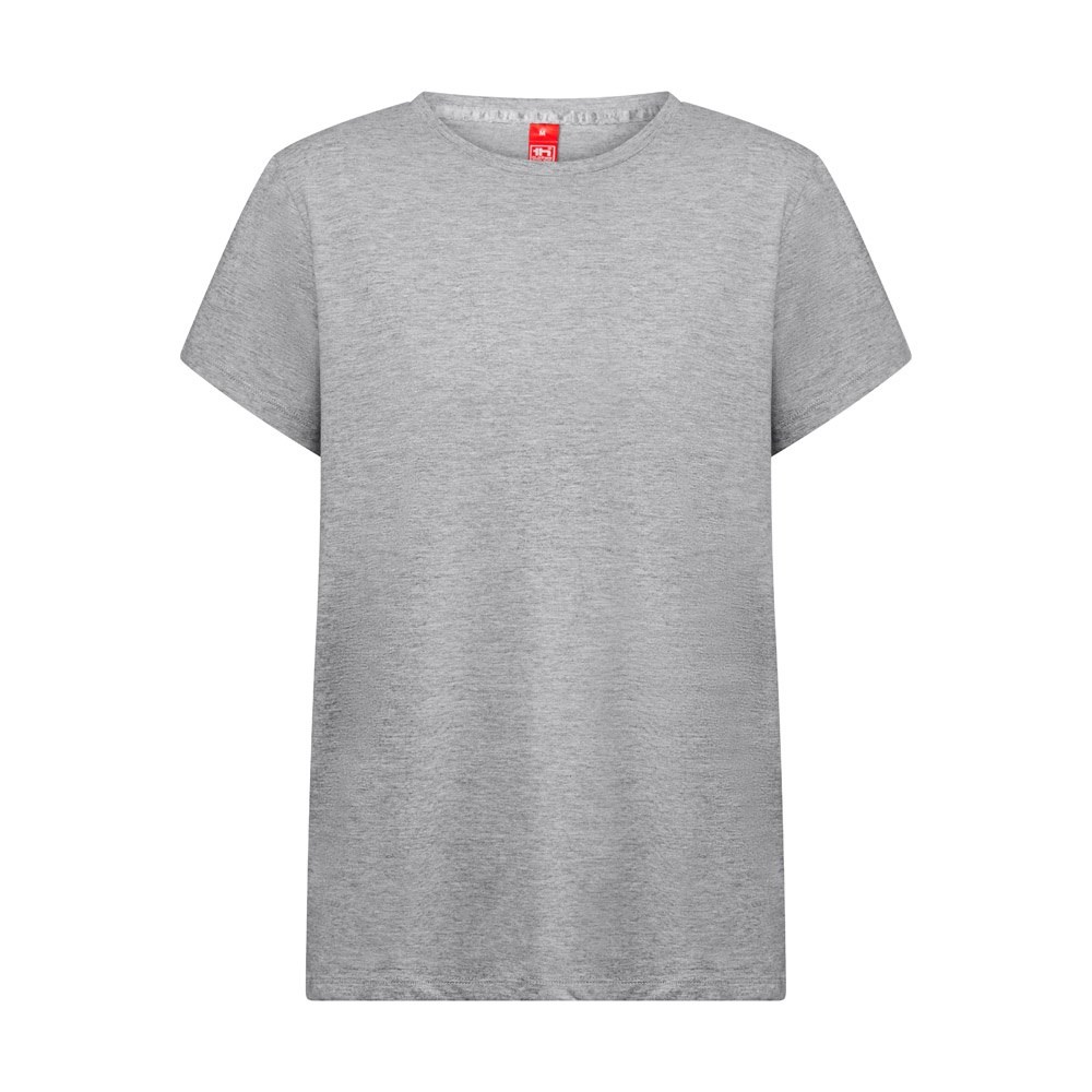 Regulär geschnittenes T-Shirt für Frauen (150 g/m²) mit enzymatischer Behandlung aus Jersey-Stoff (100% Baumwolle aus nachhaltigem Anbau). Es hat einen dünnen doppelten Kragen aus Jersey mit einem Verstärkungsband aus Satin. Geschnitten und genäht mit doppelten Nähten an den Ärmeln und an der Unterseite. Größen: XS, S, M, L, XL, XXL