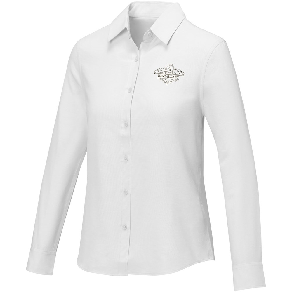 Das Pollux Langarmhemd für Damen - eine vielseitige Mischung aus Stil und Zweckmäßigkeit. Dieses Hemd ist aus einer strapazierfähigen CVC-Mischung aus 55% Baumwolle und 45% Polyester gefertigt. Es ist knitterfrei und kombiniert Strapazierfähigkeit mit einem leichten, weichen Tragegefühl. Die Kellerfalte in der Mitte des Rückens ist ein subtiles, aber raffiniertes Detail, und die Optionen für ein individuelles Branding auf der Innenseite sorgen für eine persönliche Note. Das abtrennbare Hauptetikett sorgt außerdem für einen angenehmen Tragekomfort und macht dieses Hemd zu einer großartigen Ergänzung für jede Garderobe. Dieses Hemd hat eine taillierte Form für einen femininen Look.
