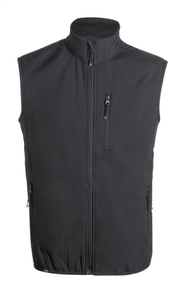 Atmungsaktive, wasser- und winddichte RPET-Softshellweste mit Reißverschluss, Brust- und Seitentaschen. Material außen: 92 % RPET-Polyester und 8 % Elastan. Material Innen: Mikrofleece aus 100 % RPET-Polyester (300 g/m²).