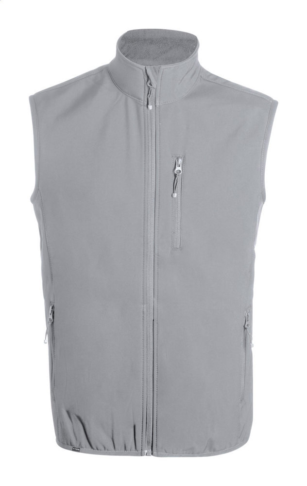 Atmungsaktive, wasser- und winddichte RPET-Softshellweste mit Reißverschluss, Brust- und Seitentaschen. Material außen: 92 % RPET-Polyester und 8 % Elastan. Material Innen: Mikrofleece aus 100 % RPET-Polyester (300 g/m²).