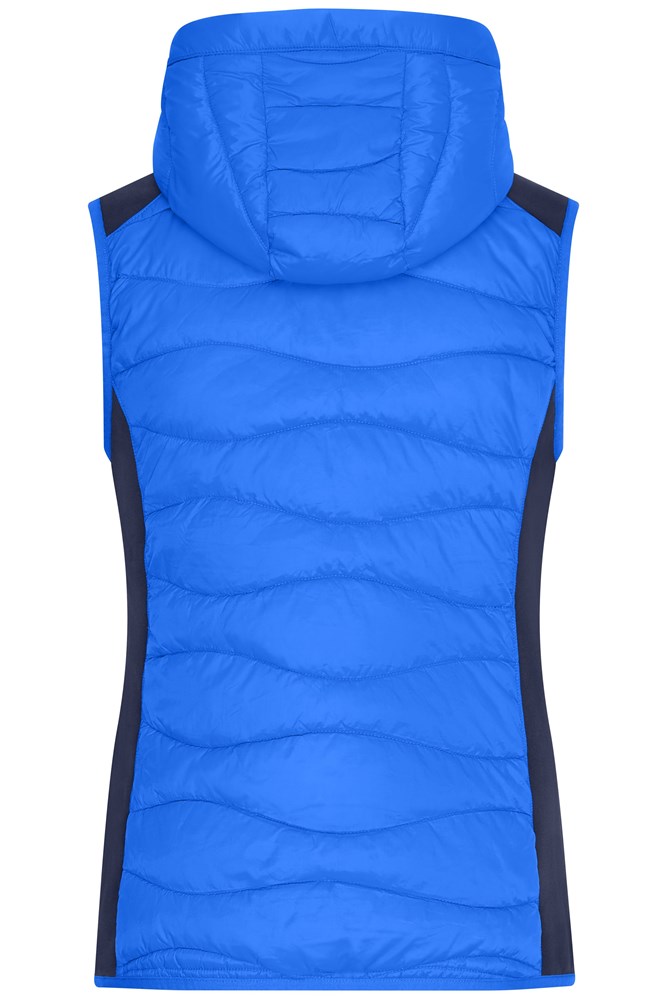 Pflegeleichter Stretchfleece kombiniert mit gesteppten Einsätzen im Vorder- und Rückenteil und Kapuze