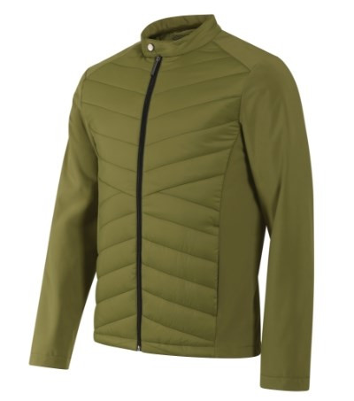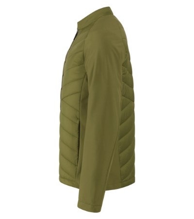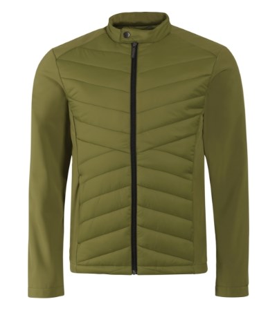 Kombination aus Stepp- und Softshell-Stoff, Schnitt mit Seitenteilen, Stehkragen mit Druckknopf, durchgehender Spiralreißverschluss, Seitentaschen mit Spiralreißverschluss, innere Brusttasche, Zugang für Branding im Futter des Rückenteils