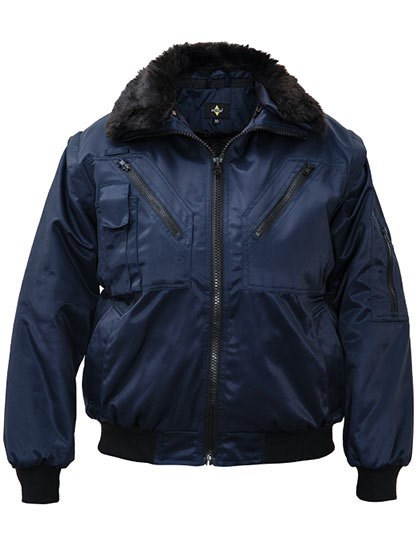 Pilotenjacke aus abriebfestem Baumwoll-Polyester-Mischgewebe, PU-Beschichtung | Zwei Brusttaschen, große Smartphonetasche, zwei Hüfttaschen, Armbüro, Innentasche | Optional mit Reißverschluss abnehmbarer Polyesterfellkragen | Optional mit Reißverschluss herausnehmbares Innenfutter | Optional mit Reißverschluss abnehmbare Ärmel | Kein Außenlabel am Produkt: Geeignet zum Rebranding | Veredelungszugang zum einfachen Bedrucken | Ausgestattet mit EAN Barcode | Einzeln in Polybeutel verpackt