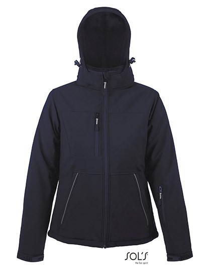 8000 mm Wassersäule | Atmungsaktive Membran | Futtertaft: 100% Polyester | Füllung: 100% Polyester 160gsm | Vollständig wattierte Softshelljacke für Damen | Abnehmbare Kapuze mit Kapuzenschirm, einstellbar mit zwei Zugkordeln mit Stoppern und Klettverschluss | Drei Fronsttaschen mit Reißverschluss | Eine Reißverschluss-Ärmeltasche | Eine Reißverschluss-Innentasche | Eine Mesh-Innentasche | Verstellbare Ärmelbündchen mit Klett-Patte und inneren Stretch-Bündchen | Elastischer Kordelzug am Bund