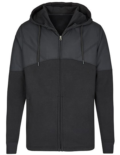 Material-Mix Sweatjacke | Classic fit | 3-lagige Sweatware, innen weich angeraut, mit einer 100% Baumwoll-Oberfläche | YKK Nylon Reißverschluss vorne | Seitentaschen mit YKK Reißverschluss | Kapuze | 2x1 Ripp an Ärmelabschluss | Entfernbares miners mate Etikett | Neutrales Größenetikett im Bund, seitlich versetzt | Einlaufvorbehandelt und Enzymgewaschen
