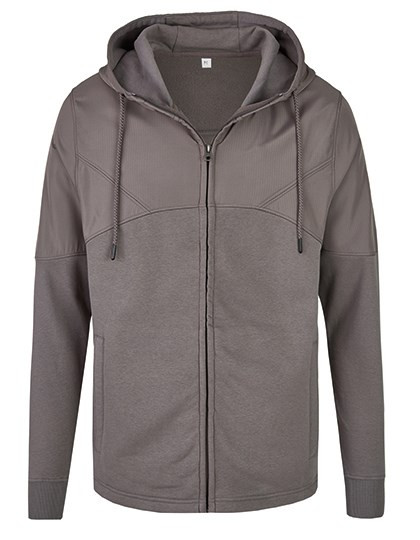 Material-Mix Sweatjacke | Classic fit | 3-lagige Sweatware, innen weich angeraut, mit einer 100% Baumwoll-Oberfläche | YKK Nylon Reißverschluss vorne | Seitentaschen mit YKK Reißverschluss | Kapuze | 2x1 Ripp an Ärmelabschluss | Entfernbares miners mate Etikett | Neutrales Größenetikett im Bund, seitlich versetzt | Einlaufvorbehandelt und Enzymgewaschen