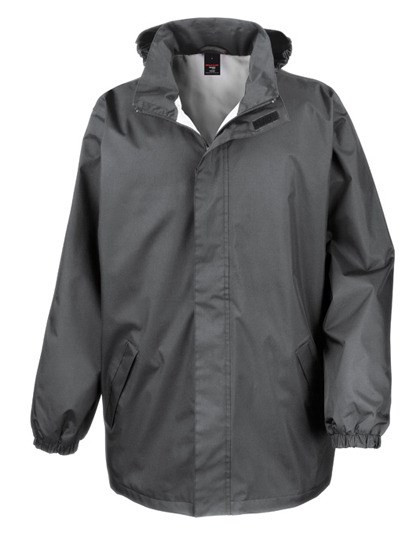Außen: 190T Polyester Pongé mit StormDri 2000 Beschichtung | Körper: Single-Jersey Futter (Polyester, 130 g/m²) | Ärmel: Futter aus 100% Polyester | Wasserdicht bis 2.000 mm und winddicht, mittelschwer | Zwei Fronttaschen, Innentaschen | Elastische Bündchen mit verstellbarem Klettverschluss | Durchgehender Reißverschluss mit Windschutzleiste | Im Kragen versteckte, 3-teilige Kapuze | Hoher Kragen | Komplett versiegelte, wasserdichte Nähte | Veredelungszugang: vollständiger Saum und Brustbereich links