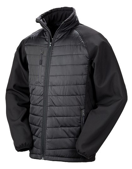 Stoff am Torso: Außenmaterial: 100 % recyceltes JIAREN®-Polyester, Füllung: 100 % recycelter REPREVE®-Polyester mit 180 g/m², Innenfutter: 100 % Polyester | Stoff an den Ärmeln: 2-lagiges Softshell-Gewebe mit 280 g/m² aus mechanischem Garn, Obermaterial: 60% Polyester / 40% recycelter TOPGREEN®-Polyester, Innenschicht: 70% Polyester-Mikrofleece / 30% recycelter TOPGREEN®-Polyester | Spritzwasserabweisend | Windproof | Atmungsaktiv | Kontrastfarbene Reißverschlüsse an den Taschen | Durchgehender YKK-Reißverschluss vorne mit Kinnschutz | Gepolsterter Stehkragen | Wattierter Torso | Eingefasste, weiche Bündchen | Schwarze Reißverschluss-Anhänger | Anhänger | Hochwertige REPREVE®-Recycling-Wattierung aus umweltfreundlichen Materialien, hergestellt aus recycelten Plastikflaschen und Industrieabfällen | Bedruckbare Ärmel aus umweltfreundlichem TOPGREEN®-Softshell-Polyester | Veredelung möglich | Hergestellt aus 14 Plastikflaschen (1 Liter) | Veredelungszugang: Brustbereich links