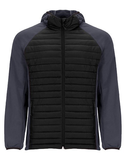 Front- und Rückenteil: 100% Polyester, Futter: 100% Polyester, Ärmel: 100% Polyester Interlock, 290 g/m² | Feste Kapuze | Raglan-Ärmel | Softshell Gewebe an Ärmeln, Seiten und Kapuze | Gesteppter, federleichter Stoff auf Vorder- und Rückseite | Durchgehender Reißverschluss Ton-in-Ton mit Kinnschutz und Puller | Zwei Taschen vorne mit Reißverschluss | Elastische Borte Ton-in-Ton an Kragen, Ärmel- und Abschlussbund | Herausreißbares Label | Windabweisend