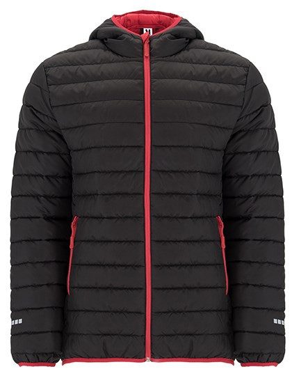 Außenseite: 100% Polyester, 300T, Futter: 100% Polyester, Wattierung: 100% Polyester, federleicht, 290 g/m² | Durchgehender Reißverschluss mit Kinnschutz und Puller in Kontrastfarbe | Feste Kapuze | Seitentaschen mit Reißverschluss und Puller in Kontrastfarbe | Reflektierende Details an Ärmeln und Rücken | Artikel 4 cm länger als das Modell NORWAY | Elastische Stoffeinfassung an Ärmelbündchen, Saum und Kapuze in Kontrastfarbe | Windabweisend | Regenabweisend