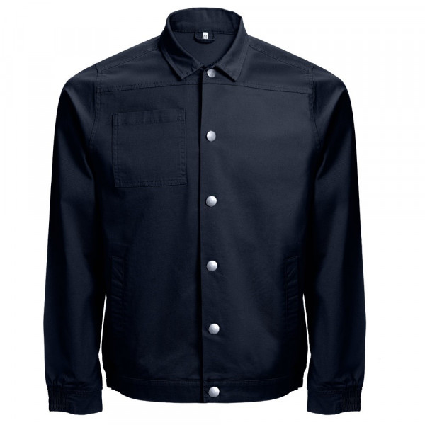 Jacke aus 98% Baumwolle und 2% Elasthan. Mit einem modernen Schnitt hat diese Jacke 2 Rückenfalten und Bund an Ärmeln und Taille. Das Schliessen erfolgt mittels Druckknöpfen. Auf der Vorderseite sind 2 Seiten- und eine Brusttasche Größen: S, M, L, XL, XXL, 3XL