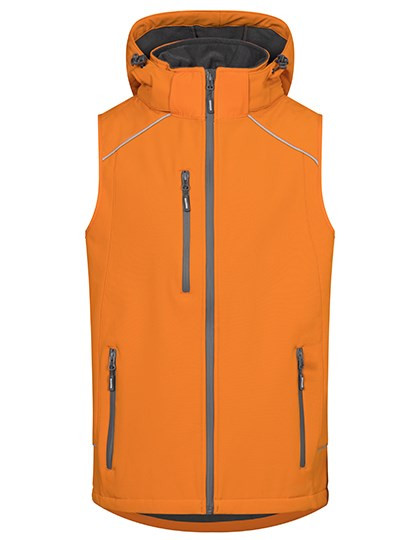 Weste | Abnehmbare und volumenregulierbare Kapuze | Wasserdichte Reißverschlüsse | Kinnschutz | Napoleontasche | Tunnelzug am Saum mit Kordelstopper innen | Verlängertes Rückenteil mit abgerundetem Saum | 2 Seitentaschen mit Reißverschluss | Eingenähter Schlüsselanhänger in Seitentasche | Reflektierende Paspeln und Reißverschlussanhänger | Teilungsnähte | Neutrales Grössenetikett | Atmungsaktiv, wasserdicht 8.000 mm, winddicht | Softshell-Bonded-Fleece bi-elastisch