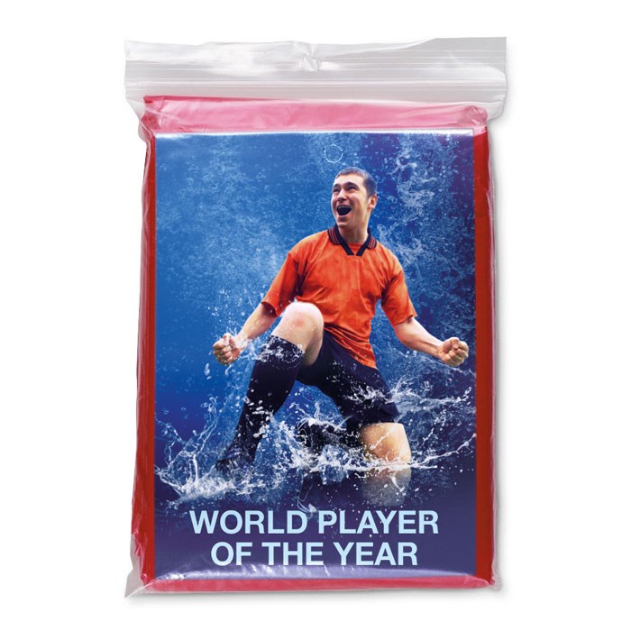 Regenmantel mit Kapuze. Praktisch, klein gefaltet. Verpackt in einem transparenten Polybeutel. mehr