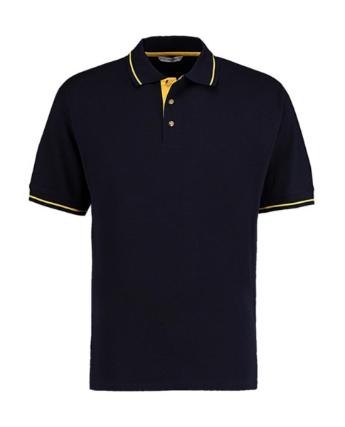 ·210 g/m² ·100% Baumwolle, gekämmtes Piqué ·Nackenband in Kontrastfarbe ·3er-Knopfleiste in... mehr