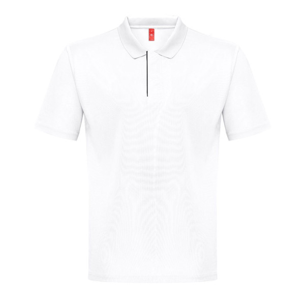 Technisches Kurzarm-Poloshirt für Herren aus 100% recyceltem Polyester-Piqué-Strick (180 g/m²). Dieses Poloshirt hat einen 1x1-Rippkragen und Doppelnähte an den Ärmeln und am Saum. Verstärkte Knopfleiste mit 3 farbigen Knöpfen in schwarzer Ausführung. Mit kleinen seitlichen Öffnungen an der Unterseite des Polos und in Schwarz ausgeführt. Größen: S, M, L, XL, XXL, 3XL