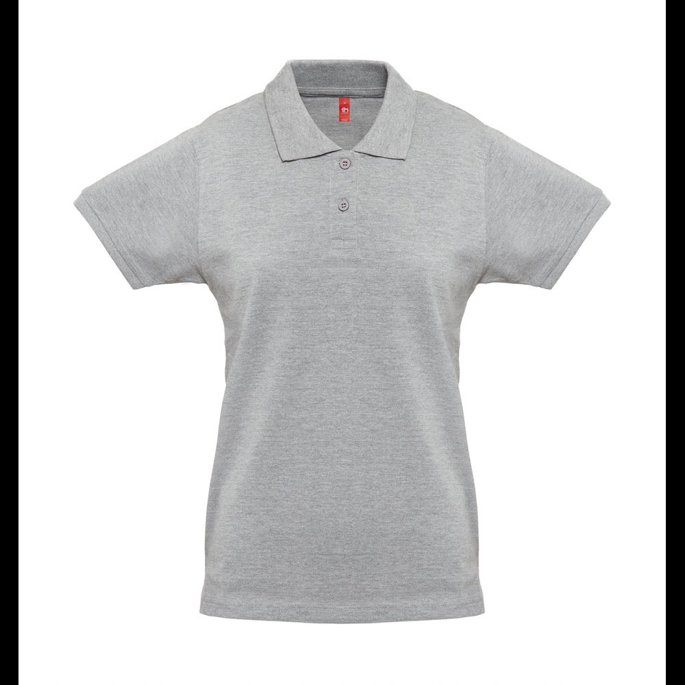 Damen Poloshirt aus Piqué Stoff 100% kardierter Baumwolle (240 g/m²), mit geripptem Kragen und Ärmel, Verstärkungsband am Kragen, seitliche Öffnungen, verstärkte Knopfleiste mit 2 farblich abgestimmten Knöpfen und einem Ersatzknopf an der Innennaht. Etikett entfernbar. Größen: S, M, L, XL, XXL