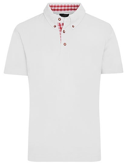 Klassisches Polo im Trachtenlook | Feine Piqué-Qualität | Gekämmte, ringgesponnene Baumwolle | Karobesatz in Kragensteg, Knopfleiste innen und Seitenschlitzen | Trachtenknöpfe aus Horn-Imitat | Halbmond Ton in Ton | Konfektionierter Button-Down-Kragen | Drei Knöpfe