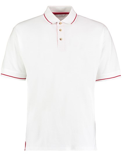 1x1-Rippstrickkragen und -bündchen mit Kontraststreifen | Schräge Kontrastknopfleiste mit drei Knöpfen | Kontrastierende Seitenschlitze mit Fischgrätenmuster | Halbmondförmige Rückenpasse | Verstärkte Schulternähte | Doppelte Ziernähte an den Bündchen | Nackenband und Innenkragen aus dem gleichen Stoff in Kontrastfarbe | Doppelte Ziernähte an Armausschnitten und Schulternähten | Doppelnadel-Saum | Ersatzknopf am Pflegeetikett | Gewebtes Nackenetikett
