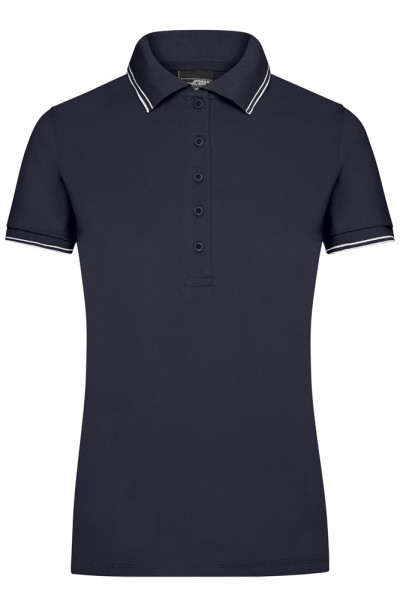 Gekämmte, ringgesponnene Baumwolle Gestrickter Polokragen und Armbündchen mit Kontraststreifen Seitenschlitze kontrastfarbig abgesetzt JN985: 5 Knöpfe, taillierter Schnitt JN986: 3 Knöpfe 1/2 Oberweite: 46 cm 1/2 Taillenweite: 41 cm 1/2 Saumweite: 46 cm Länge ab Schulter: 62 cm Ärmel Länge: 18 cm OEKO-TEX® Standard 100 (15.0.70467) kurz Baumwolle Elastan