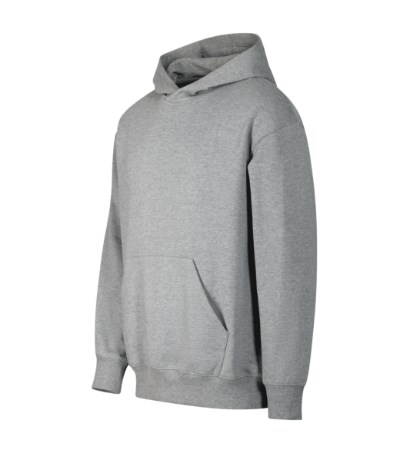 ohne Etikett - vorbereitet zur Umetikettierung, fließender Schnitt mit Seitennähten, Kapuze mit Innenfutter, neutrales Größenetikett am hinteren Halsauschnitt, Innenseite des Kragens durch ein gewebtes Band versäubert , niedrige Flügelärmel, aufgesetzte Kängurutasche, unterer Rand und Ärmelmanschetten aus 2:2 Rippstrick mit 5 % Elastanzugabe, Innenseite gekämmt