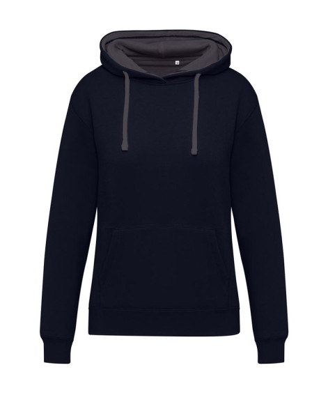 ·2-lagige Kapuze mit Single-Jersey-Futter in Kontrastfarbe, passend zu den flachen Kordelzügen