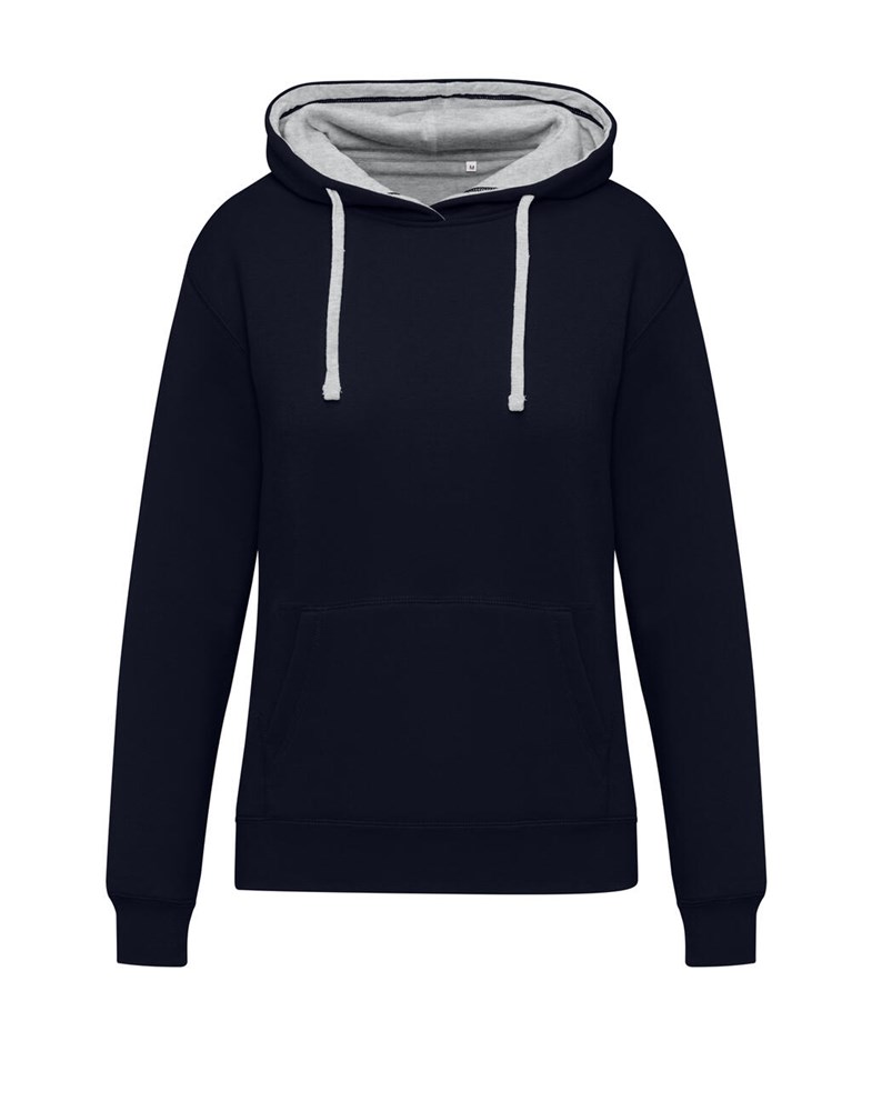 ·2-lagige Kapuze mit Single-Jersey-Futter in Kontrastfarbe, passend zu den flachen Kordelzügen