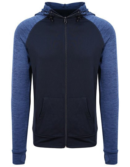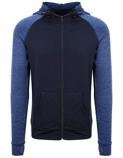 Slim Fit und | Mischgewebe von AWDis mit Elasthan für hohen Tragekomfort und hervorragende Passform | Feuchtigkeitsableitendes, schnell trocknendes Material | Durchgehender Reißverschluss an der Vorderseite | Ärmel in melierter Kontrastfarbe | Kängurutasche | Hinten verlängerter Saum | Kapuze mit verstellbaren Knebeln | Daumenöffnungen | Raglan-Ärmel | Abreißetikett