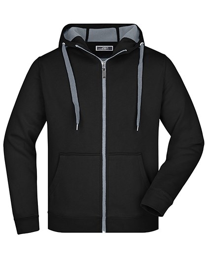 Sportive Bonding-Herrenjacke mit Kapuze | Kapuze mit Kinnschutz | Full-Zip | Kordel und Innenseite in Kontrastfarbe | Kängurutaschen | Flatlocknähte | Elastische Bündchen an Arm- und Bundabschluss | Eingesetzte Ärmel