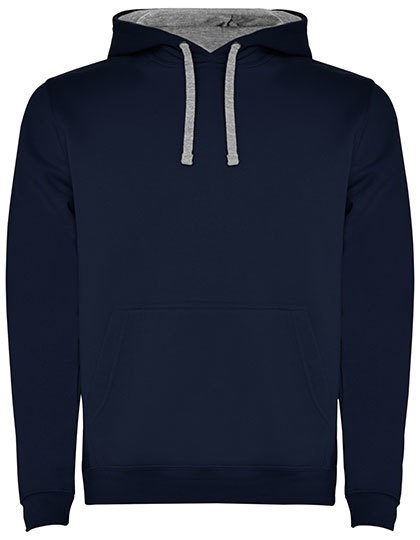 Innen angeraut | Kapuze innen (Single Jersey), Kordelzug und Metall-Ösen in Kontrastfarbe | Nackenband mit Fischgrätmuster | Kangorootasche | 1x1 Ripp-Strick und Elasthan an Ärmelbündchen und Saum | Herausreißbares Label