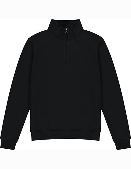 Herren-Sweatshirt mit 1/4-Reißverschluss vorne und Kadettenkragen | Reguläre Passform | Nackenbereich und Innenkragen aus gleichem Material | Verklebtete Schulternähte | Vollständig doppellagige Manschetten und Paspeln mit doppelter Kantennaht | Doppellagiger Kadettenkragen | Doppelt genähte Armausschnitte und Schulternähte | Zirkoniumfarbener Metall-YKK-Reißverschluss und -Zug | Herausnehmbares Nackenlabel | Verdeckter Reißverschluss für bessere Bedruckbarkeit