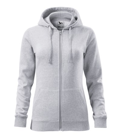 Sweatshirt Damen Trendy Zipper hellgrau melliert