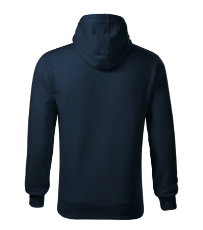 gerader Schnitt mit Seitennähten, Kapuze mit Innenfutter, durch Kordel zusammenziehbar, Innenseite des Kragens durch ein farbiges gewebtes Band versäubert, aufgesetzte Kängurutasche, unterer Rand und Ärmelmanschetten aus 2:2 Rippstrick mit 5 % Elastanzugabe, Innenseite gekämmt
